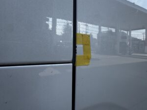 先日給油でご利用いただいたお客様より、右側スライドドアの線キズ修理をご依頼頂きました。