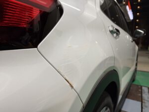 『バンパーからリアクウォーターにかけて凹みキズサイズが大きく気になる、、、。』